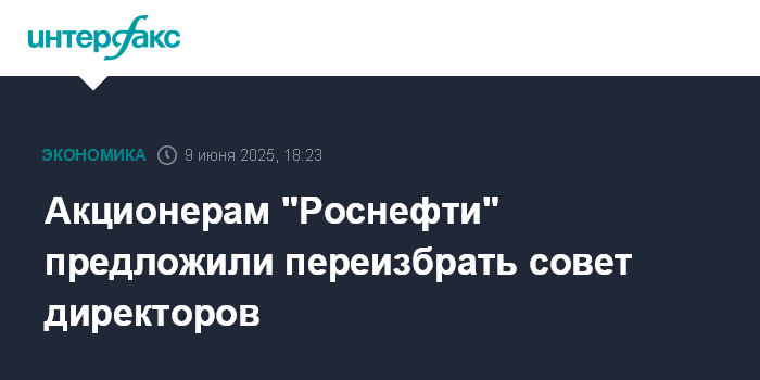 Москва. 9 июня. INTERFAX.RU - Совет директоров "Роснефти" предложил акционерам избрать в новый состав действующих участников.