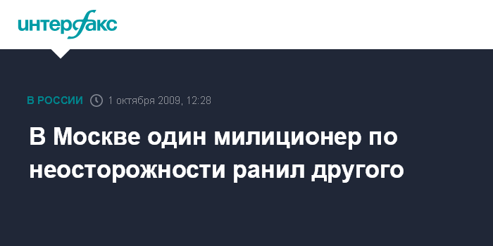 Москва. 1 октября. INTERFAX.RU - В Москве из-за неосторожного обращения с оружием получил огнестрельное ранение дежурный по ОВД "Марьина роща" старший лейтенант милиции Алексей Пахомов. Как сообщил "Интерфаксу" источник в правоохранительных органах, в четверг в 9:00 А.Пахомов принимал оружие у наряда, вернувшегося со службы. "Во время разряжения один из милиционеров случайно нажал на спусковой крючок, последовал выстрел, и пуля попала лейтенанту в бедро. Он госпитализирован, уже сделана операция", - рассказал собеседник агентства. Он добавил, что по данным медиков, жизни раненого угрозы нет.