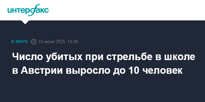 Ранее во вторник в школе в австрийском Граце произошла стрельба. Сообщалось, что были убиты девять человек: семь учеников и один взрослый, а также предполагаемый стрелок.