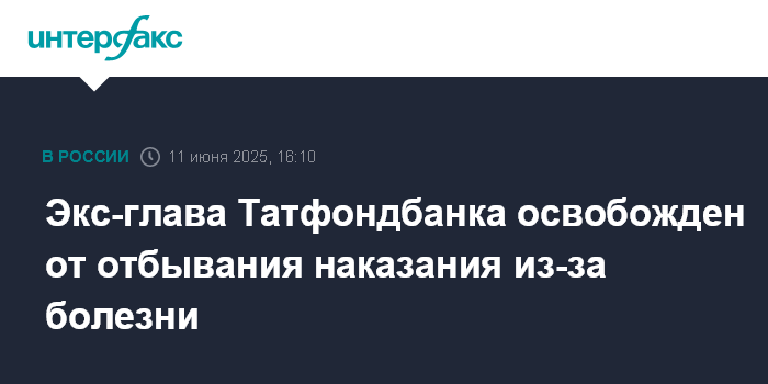 Экс-глава Татфондбанка освобожден от отбывания наказания из-за болезни