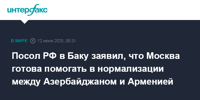 Посол РФ в Баку заявил, что Москва готова помогать в нормализации между Азербайджаном и Арменией