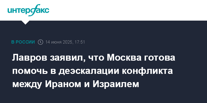 Лавров заявил, что Москва готова помочь в деэскалации конфликта между Ираном и Израилем