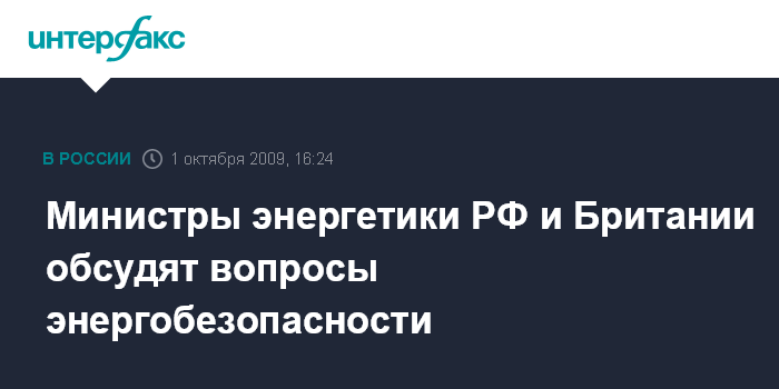 Министры энергетики РФ и Британии обсудят вопросы энергобезопасности