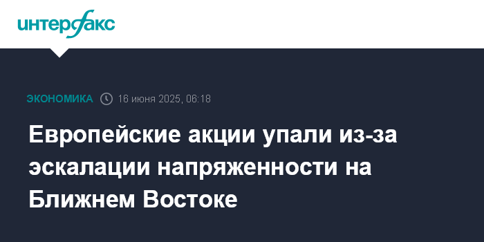 Европейские акции упали из-за эскалации напряженности на Ближнем Востоке