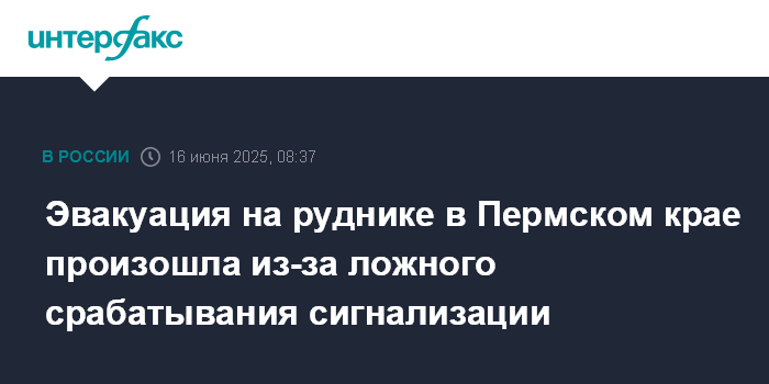 Эвакуация на руднике в Пермском крае произошла из-за ложного срабатывания сигнализации