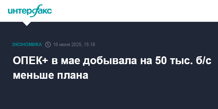 ОПЕК+ в мае добывала на 50 тыс. б/с меньше плана