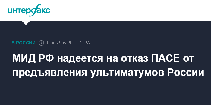 Москва. 1 октября. INTERFAX.RU - В МИД России рассчитывают, что ПАСЕ впредь воздержится от ультиматумов в адрес России.