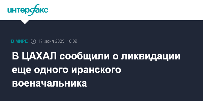 Москва. 17 июня. INTERFAX.RU - В Армии обороны Израиля (ЦАХАЛ) во вторник заявили, что им удалось ликвидировать командующего центра управления в чрезвычайных ситуациях "Хатам аль-Анбия" Вооруженных сил Ирана Али Шадмани.