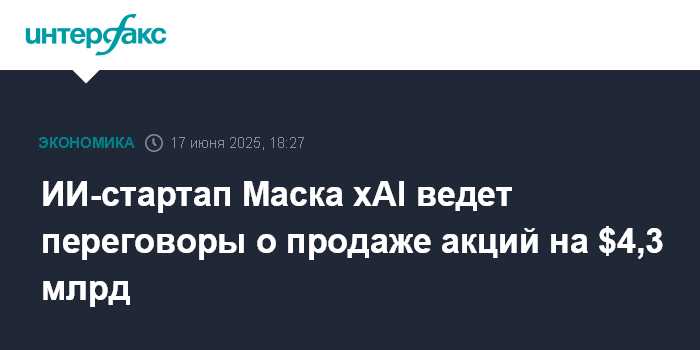 ИИ-стартап Маска xAI ведет переговоры о продаже акций на $4,3 млрд