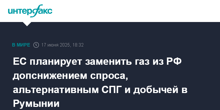 ЕС планирует заменить газ из РФ допснижением спроса, альтернативным СПГ и добычей в Румынии