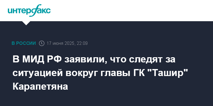 В МИД РФ заявили, что следят за ситуацией вокруг главы ГК "Ташир" Карапетяна