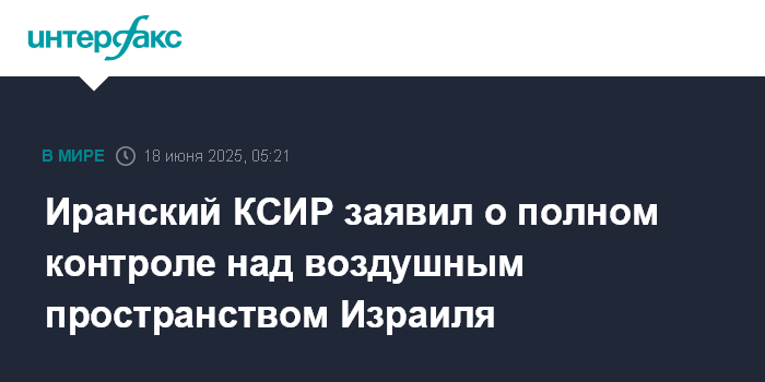 Иранский КСИР заявил о полном контроле над воздушным пространством Израиля