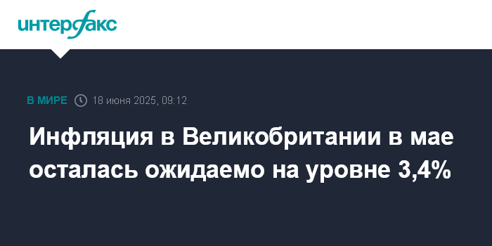 Инфляция в Великобритании в мае осталась ожидаемо на уровне 3,4%