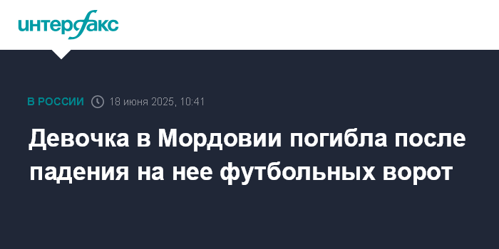 Москва. 18 июня. INTERFAX.RU - Футбольные ворота насмерть придавили 16-летнюю девочку в Мордовии, сообщает республиканское СУ СКР.