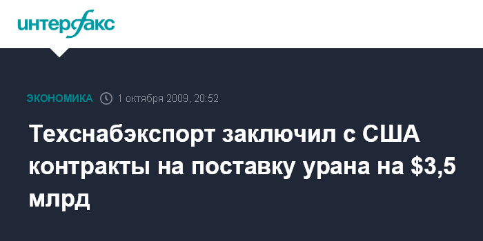 Москва. 1 октября. INTERFAX.RU - ОАО "Техснабэкспорт" после достижения договоренности по снятию антидемпинговых ограничений в США уже заключило прямые долгосрочные контракты с американскими компаниями на $3,5 млрд, сообщил журналистам источник в атомной отрасли.