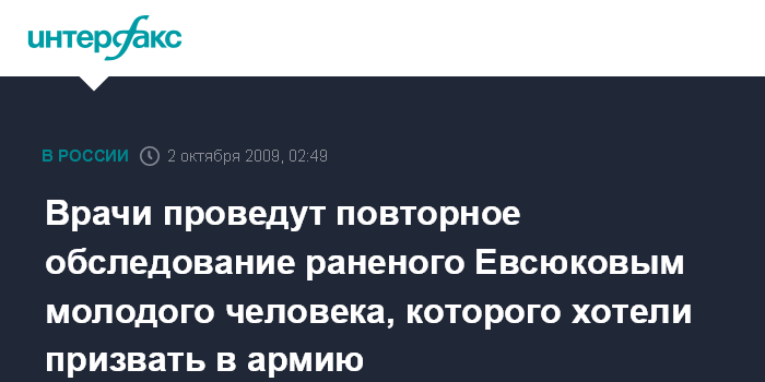 Врачи проведут повторное обследование раненого Евсюковым молодого человека, которого хотели призвать в армию
