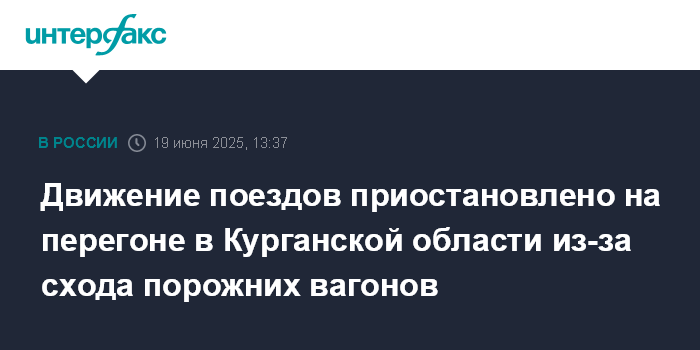 Как уточнили "Интерфаксу" в пресс-службе ЮУЖД, движение приостановлено на время проведения восстановительных работ на перегоне "Качусово-Каргаполье" в Курганской области.
