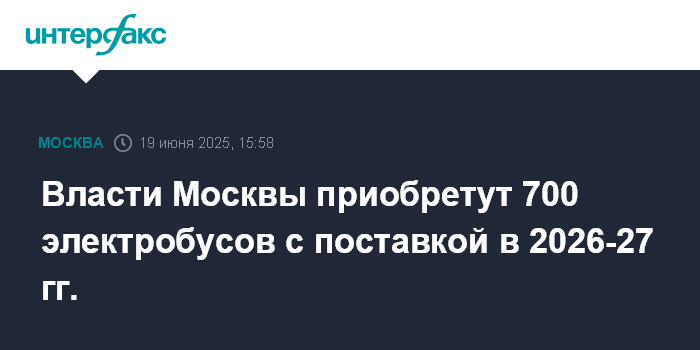 Москва. 19 июня. INTERFAX.RU - Москва планирует приобрести еще 700 электробусов с поставкой в 2026-2027 годах, сообщил заммэра Москвы по вопросам транспорта и промышленности Максим Ликсутов в четверг.