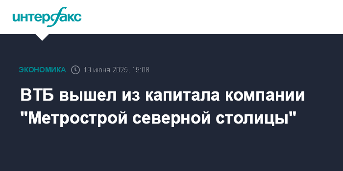 Москва. 19 июня. INTERFAX.RU - ВТБ вышел из капитала компании "Метрострой северной столицы", сообщил журналистам глава ВТБ Андрей Костин в кулуарах ПМЭФ-2025.