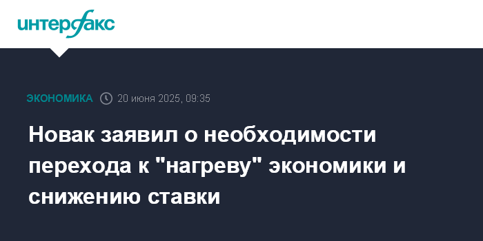 Новак заявил о необходимости перехода к "нагреву" экономики и снижению ставки