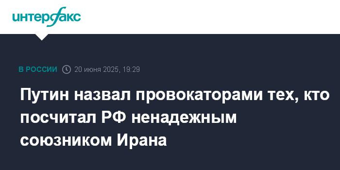 Путин назвал провокаторами тех, кто посчитал РФ ненадежным союзником Ирана