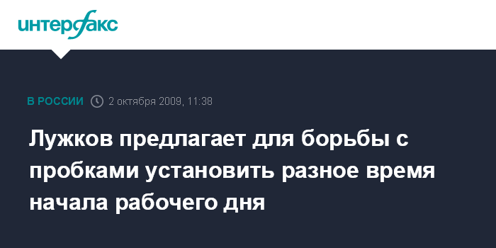 Москва. 2 октября. INTERFAX.RU - Мэр Москвы Юрий Лужков предлагает установить в Москве разное время начала работы организаций, чтобы снизить пиковые нагрузки на дороги и общественный транспорт. На пресс-конференции в пятницу он напомнил, что столичные власти выходили с такой идеей еще три года назад. "Мы предлагали разные сроки начала работы банковских структур, учебы, магазинов, других организаций, чтобы рассредоточить пиковые нагрузки. Если это произойдет, мы уже получим не вершину Эвереста, а холмики", - сказал мэр. Он отметил, что эта идея несколько лет назад была высмеяна в СМИ, однако она очень полезна для города. "Давайте подумаем над этим", - обратился Лужков.