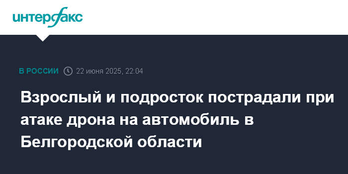 Москва. 22 июня. INTERFAX.RU - Два человека пострадали при атаке украинского дрона на движущийся автомобиль в Валуйском округе Белгородской области, сообщил губернатор Вячеслав Гладков.