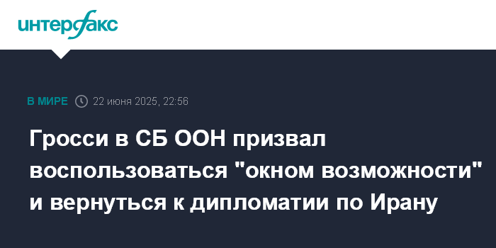 Гросси в СБ ООН призвал воспользоваться "окном возможности" и вернуться к дипломатии по Ирану