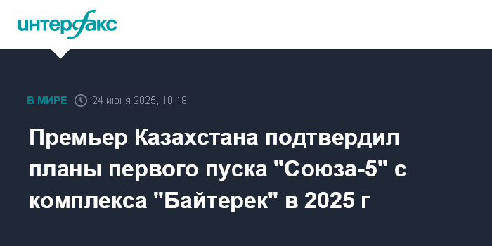 Премьер Казахстана подтвердил планы первого пуска "Союза-5" с комплекса "Байтерек" в 2025 г
