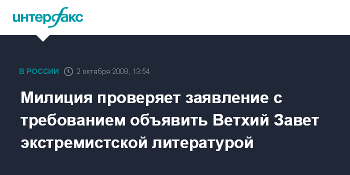 Милиция проверяет заявление с требованием объявить Ветхий Завет экстремистской литературой