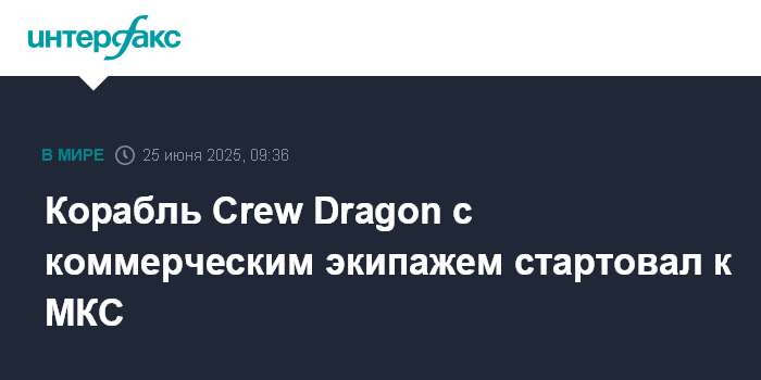 Москва. 25 июня. INTERFAX.RU - Многоразовый корабль Crew Dragon с четырьмя коммерческими туристами в среду стартовал к Международной космической станции (МКС) в рамках программы компании Axiom Space, сообщило NASA.
