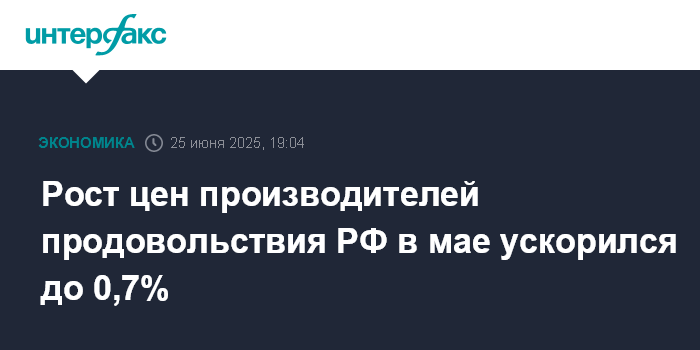 Рост цен производителей продовольствия РФ в мае ускорился до 0,7%