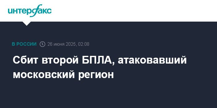 Москва. 26 июня. INTERFAX.RU - Мэр Москвы Сергей Собянин сообщил о втором сбитом беспилотнике.