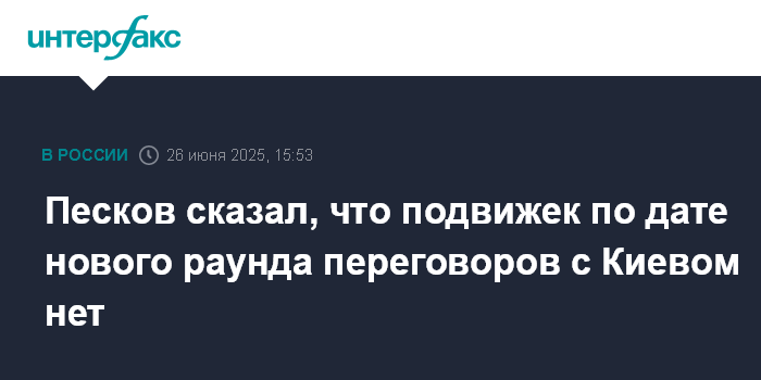 Москва. 26 июня. INTERFAX.RU - На данный момент никаких подвижек с определением даты третьего раунда российско-украинских переговоров нет, она может определиться после завершения обмена пленными, заявил пресс-секретарь президента РФ Дмитрий Песков.