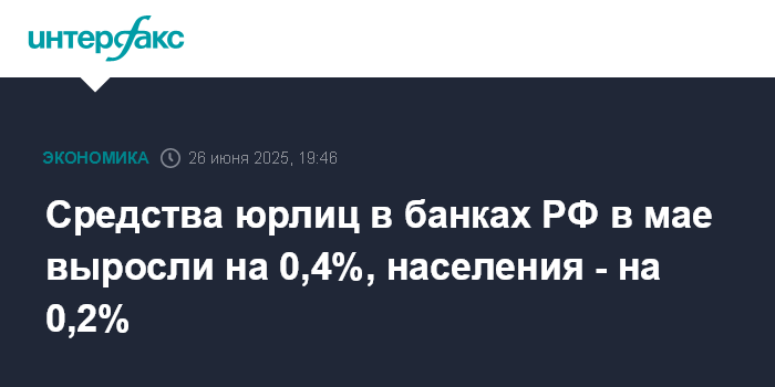 Прирост депозитов произошел у компаний из широкого круга отраслей, отмечает регулятор. Увеличились как рублевые средства (+181 млрд руб., +0,4%), так и валютные (+72 млрд руб., +0,9%). Объем средств юрлиц на 1 июня 2025 года достиг 57,3 трлн руб.