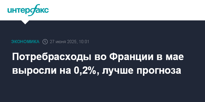 Москва. 27 июня. INTERFAX.RU - Потребительские расходы во Франции в мае выросли на 0,2% по сравнению с предыдущим месяцем, говорится в сообщении Национального статистического управления Insee.