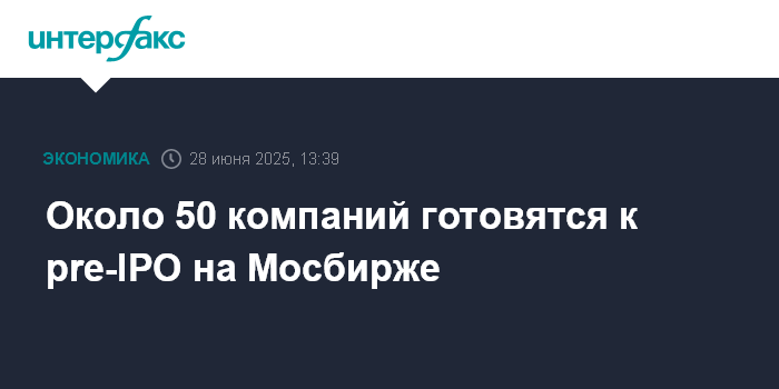 Москва. 28 июня. INTERFAX.RU - Около 50 компаний хотят провести pre-IPO на платформе "Московской биржи" и находятся в разной степени готовности, до конца 2025 года ожидается несколько сделок, сообщил директор рынка акций биржи Владимир Овчаров.