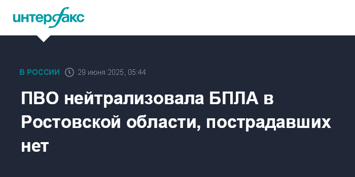 ПВО нейтрализовала БПЛА в Ростовской области, пострадавших нет