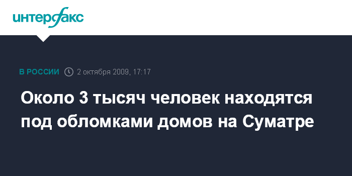 Джакарта. 2 октября. INTERFAX.RU - Представители правительства Индонезии заявили в пятницу, что около 3 тысяч человек находятся под обломками зданий, обрушившихся в результате землетрясения мощностью в 7,6 балла по шкале Рихтера, произошедшего на острове Суматра в минувшую среду, сообщает агентство ЭФЭ.