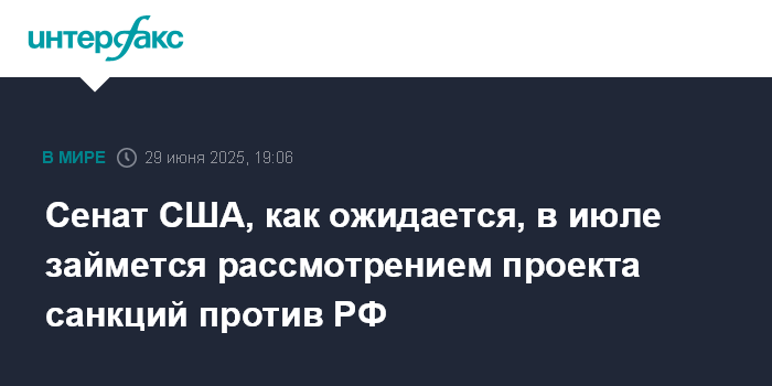 Сенат США, как ожидается, в июле займется рассмотрением проекта санкций против РФ