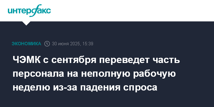 ЧЭМК с сентября переведет часть персонала на неполную рабочую неделю из-за падения спроса
