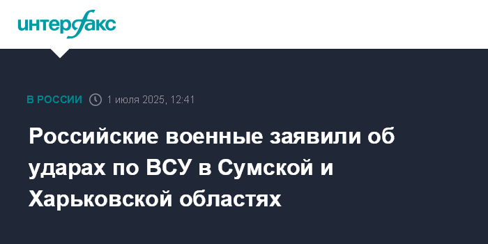 Москва. 1 июля. INTERFAX.RU - Войска группировки "Север" за сутки улучшили положение в зоне СВО, нанесли удары по ВСУ в Сумской и Харьковской областях, сообщает министерство обороны РФ.