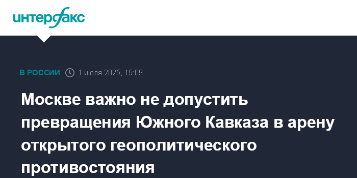 Москве важно не допустить превращения Южного Кавказа в арену открытого геополитического противостояния