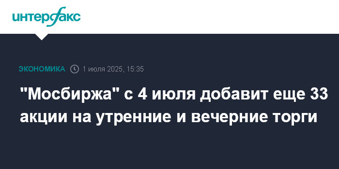 "Мосбиржа" с 4 июля добавит еще 33 акции на утренние и вечерние торги