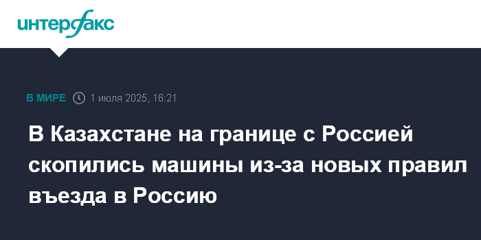 Москва. 1 июля. INTERFAX.RU - Новые правила въезда в России стали одной из причин скопления большегрузов и рейсовых автобусов в ряде погранпунктов на казахстанско-российской границе, сообщили в МВД Казахстана.