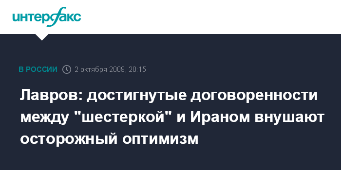 Лавров: достигнутые договоренности между "шестеркой" и Ираном внушают осторожный оптимизм