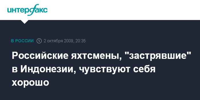 Джакарта. 2 октября. INTERFAX.RU - Российские яхтсмены, оказавшиеся в бедственном положении на индонезийском острове Сипора, отправляются в Москву, сообщил "Интерфаксу" консул России в Джакарте Владимир Пронин.