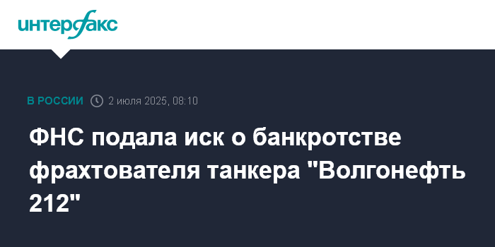 ФНС подала иск о банкротстве фрахтователя танкера "Волгонефть 212"