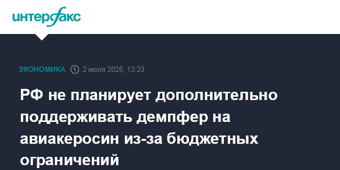 РФ не планирует дополнительно поддерживать демпфер на авиакеросин из-за бюджетных ограничений