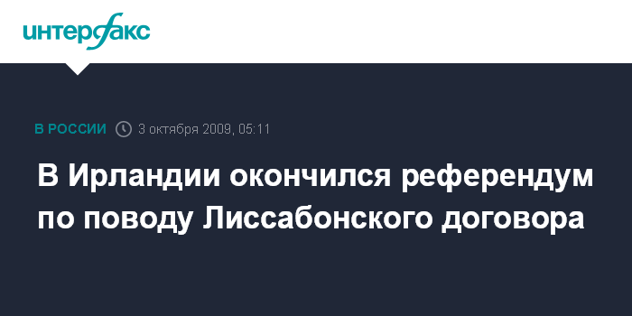 Лондон. 3 октября. ИНТЕРФАКС - Избирательные участки в Ирландии, где проходил повторный референдум по ратификации Лиссабонского договора, закрылись, сообщает британская телерадиокорпорация Би-Би-Си в субботу.